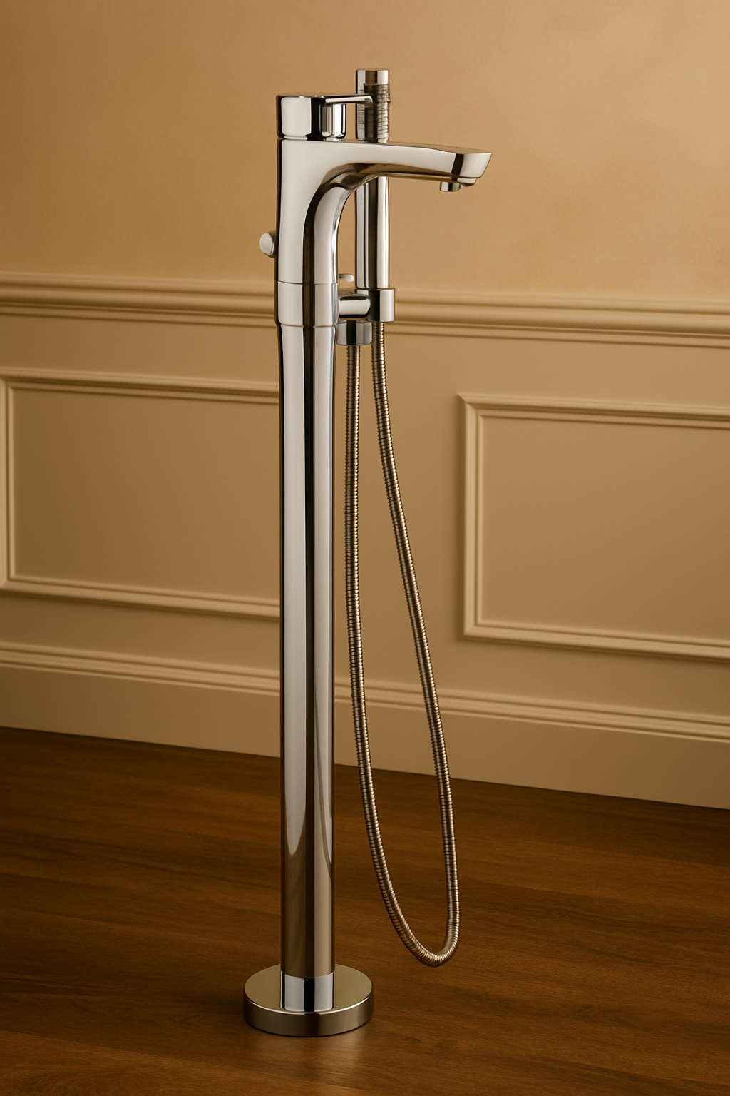 Crafted for lasting durability and style, the Free Standing Tub Filler with Hand Shower and Stop Valves by Cheviot Products brings together form, function, and...