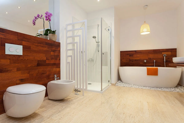 Most people imagine rotting, soggy planks when they think about a wood-floored bathroom. While this can certainly happen with ordinary wood materials and unfinished planks, it doesn’t with wood that’s suited for wet environments. In particular, bamboo and teak fare well in the bathroom because they’re from trees that grow in humid climates.