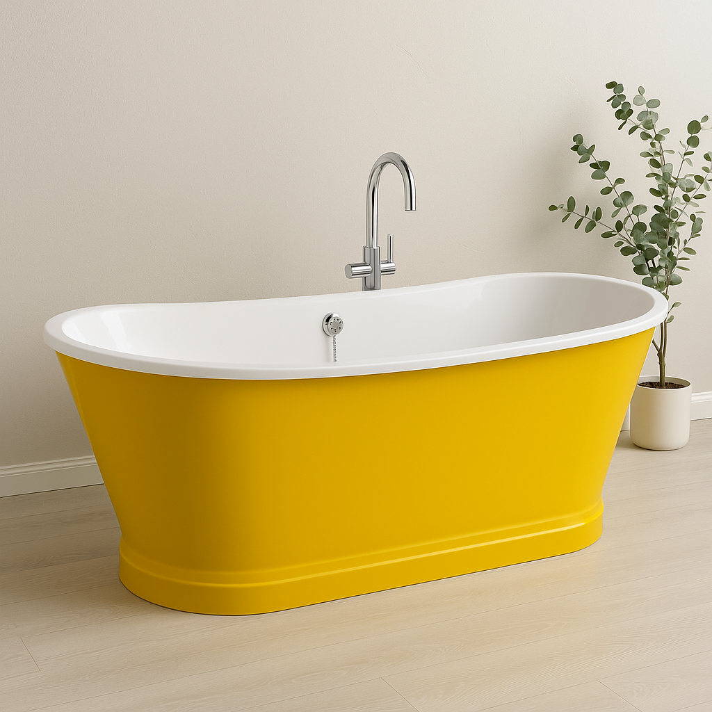 Bring color and character to your space with the Balmoral Cast Iron Bathtub by Cheviot Products. Shown here in a bold custom yellow finish, this bathtub transforms a simple bathroom into a lively expression of modern style and luxury.