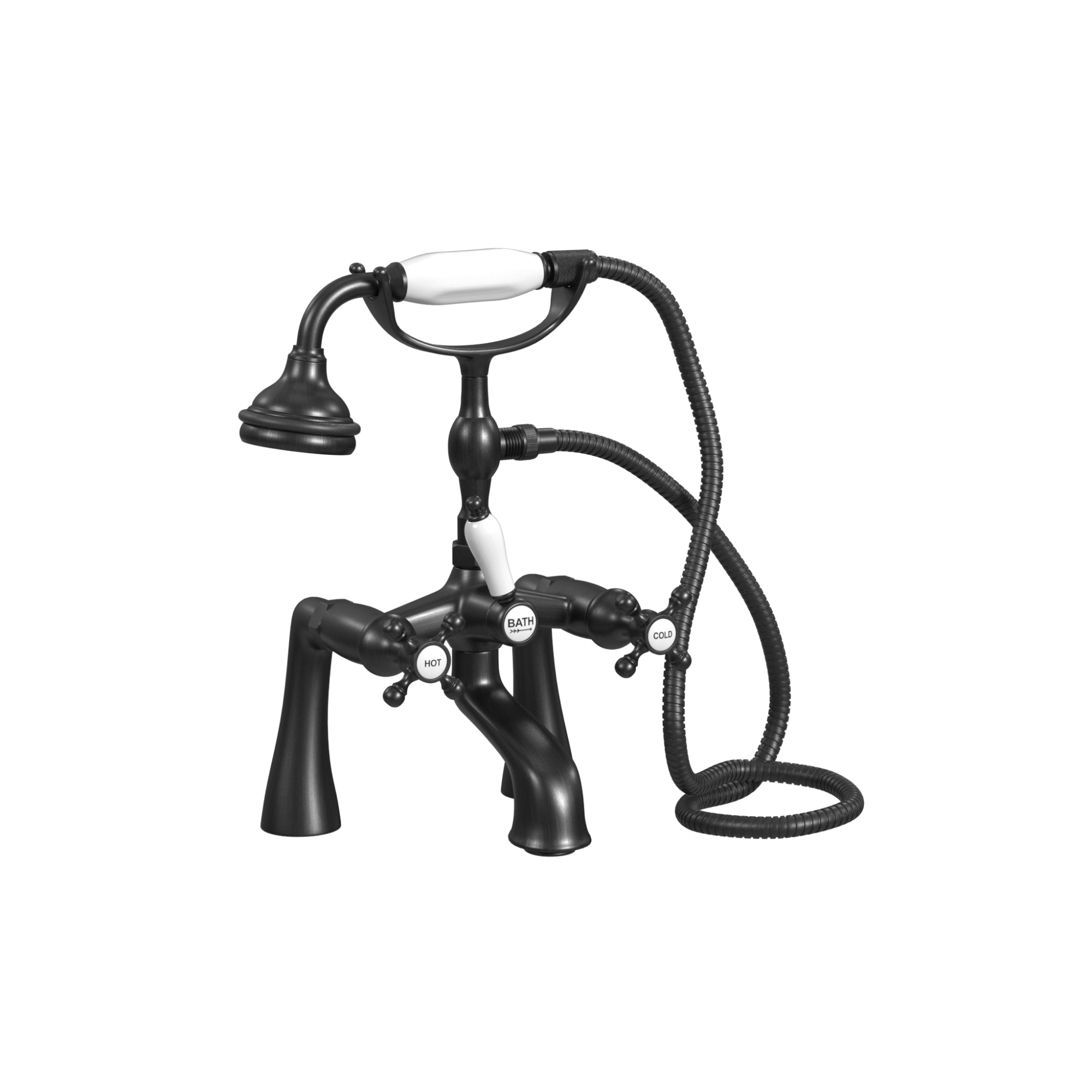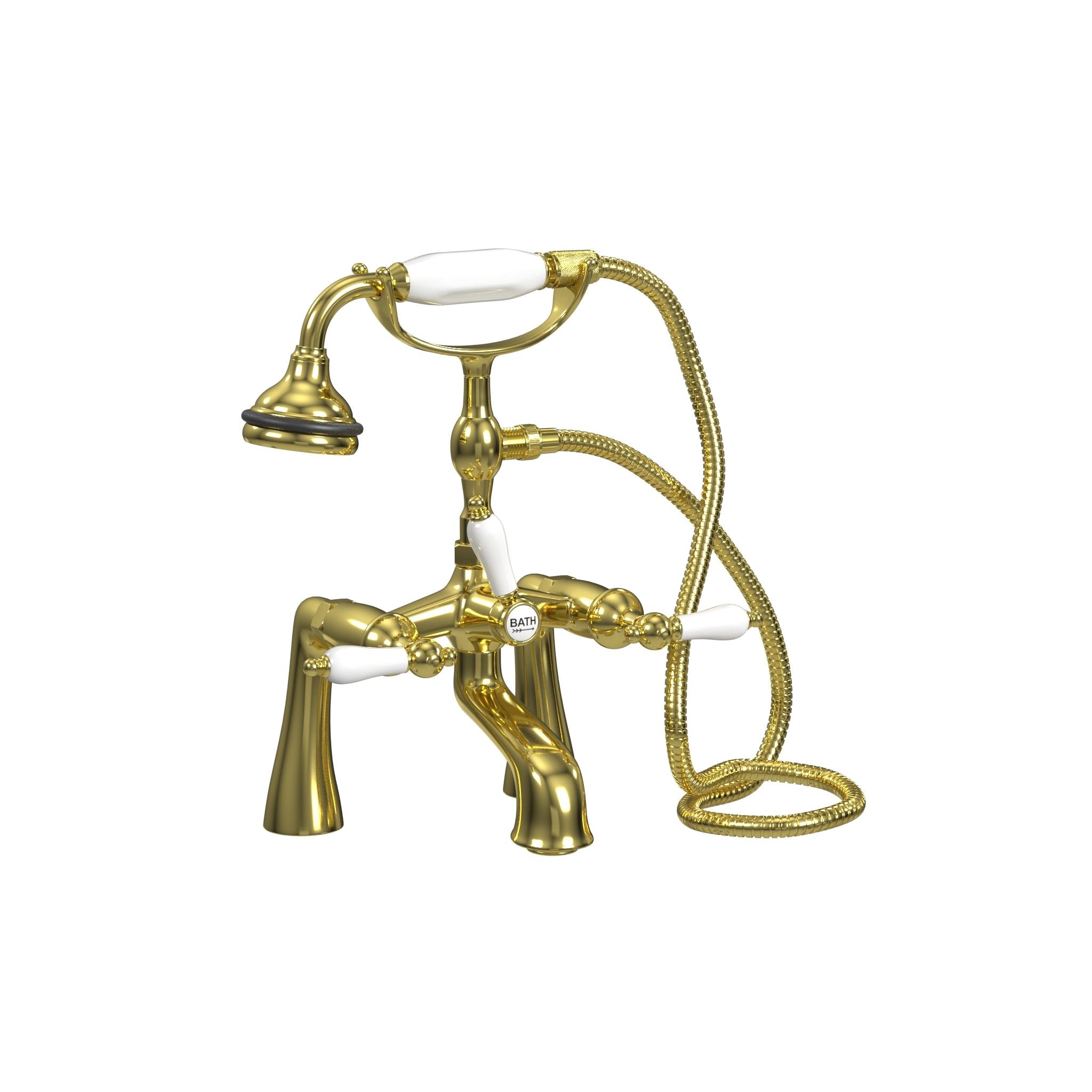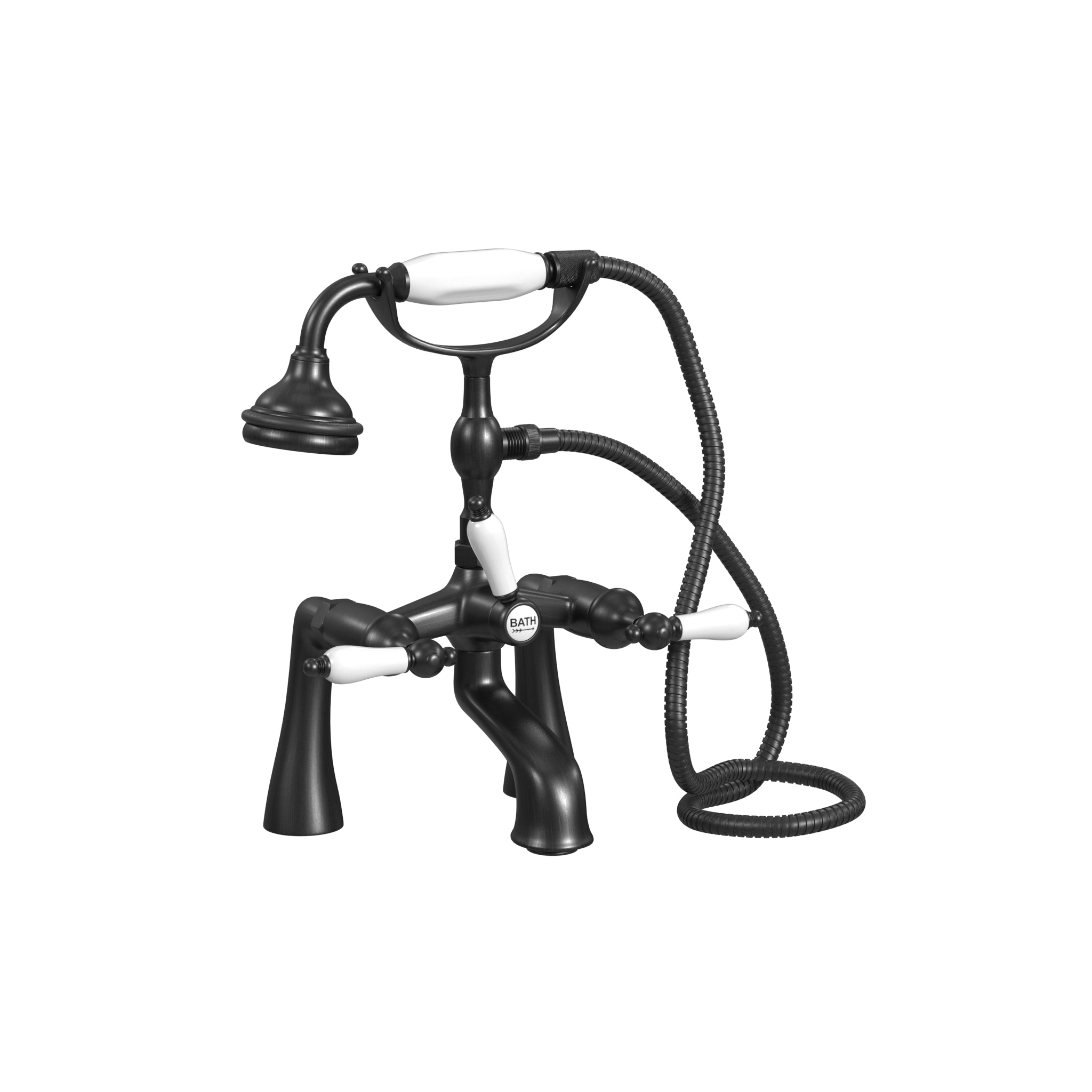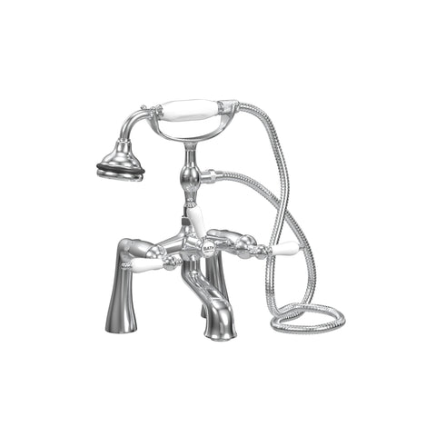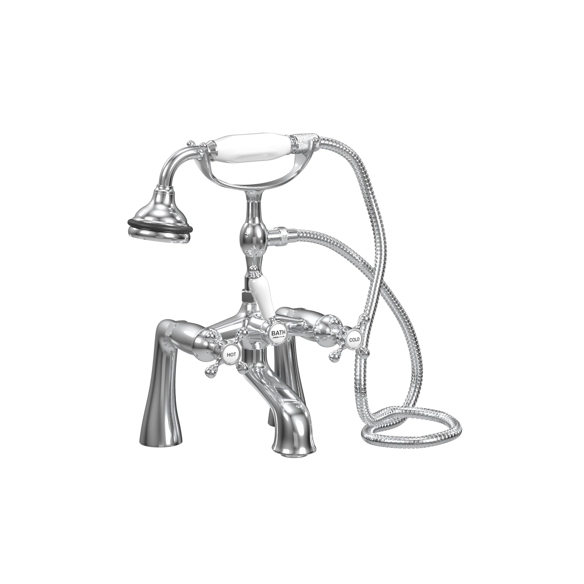 Shop the Deck Mount Tub Filler with Hand Shower, 7" Spread, Ceramic Accents by Cheviot—European ceramic faucet handcrafted for luxury & durability. Life...