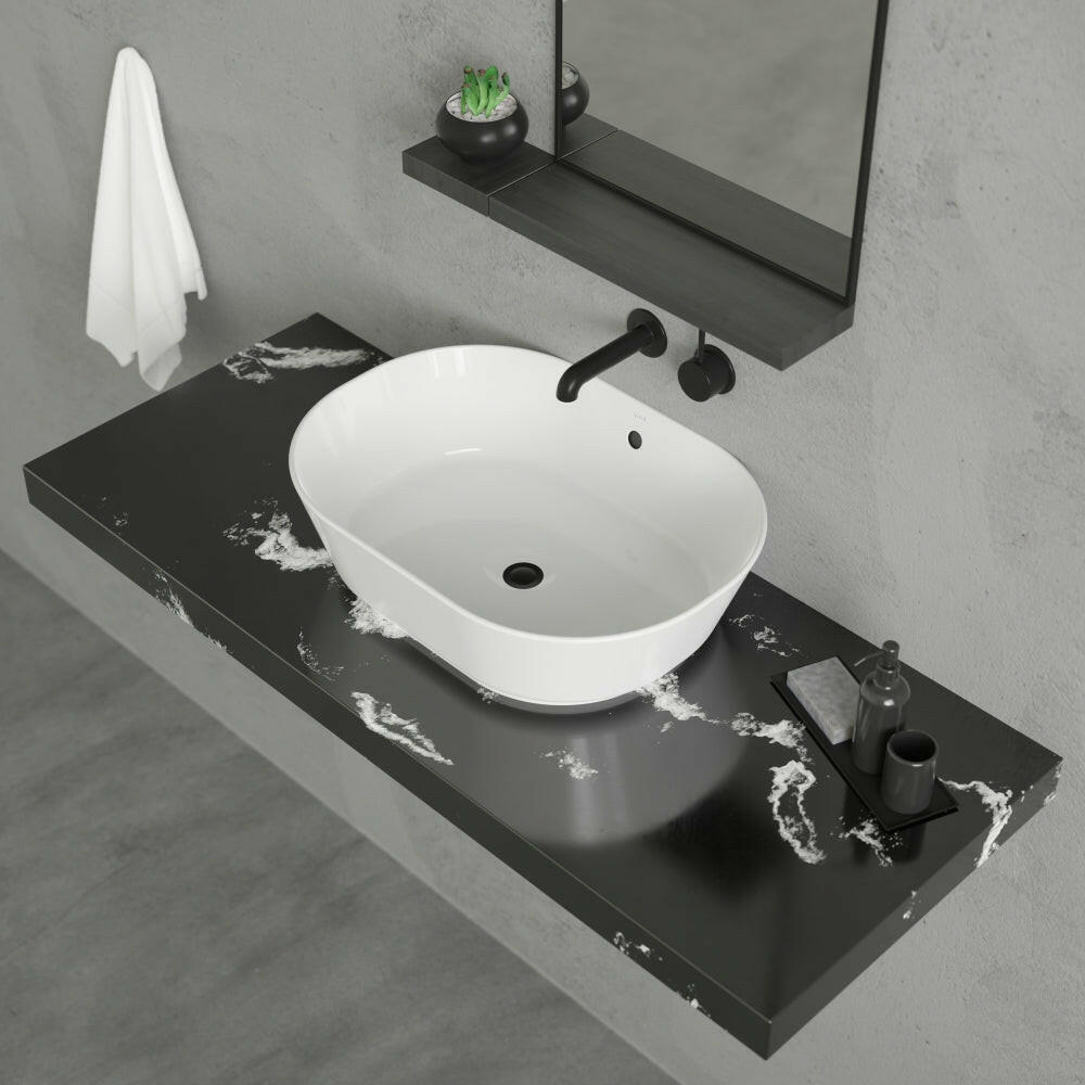 The GEO 2 Vessel Sink blends an elegant organic design with great practicality. The large bowl extends towards the user for ease of use, while the subtle curves and flat edges provide a seamless silhouette.