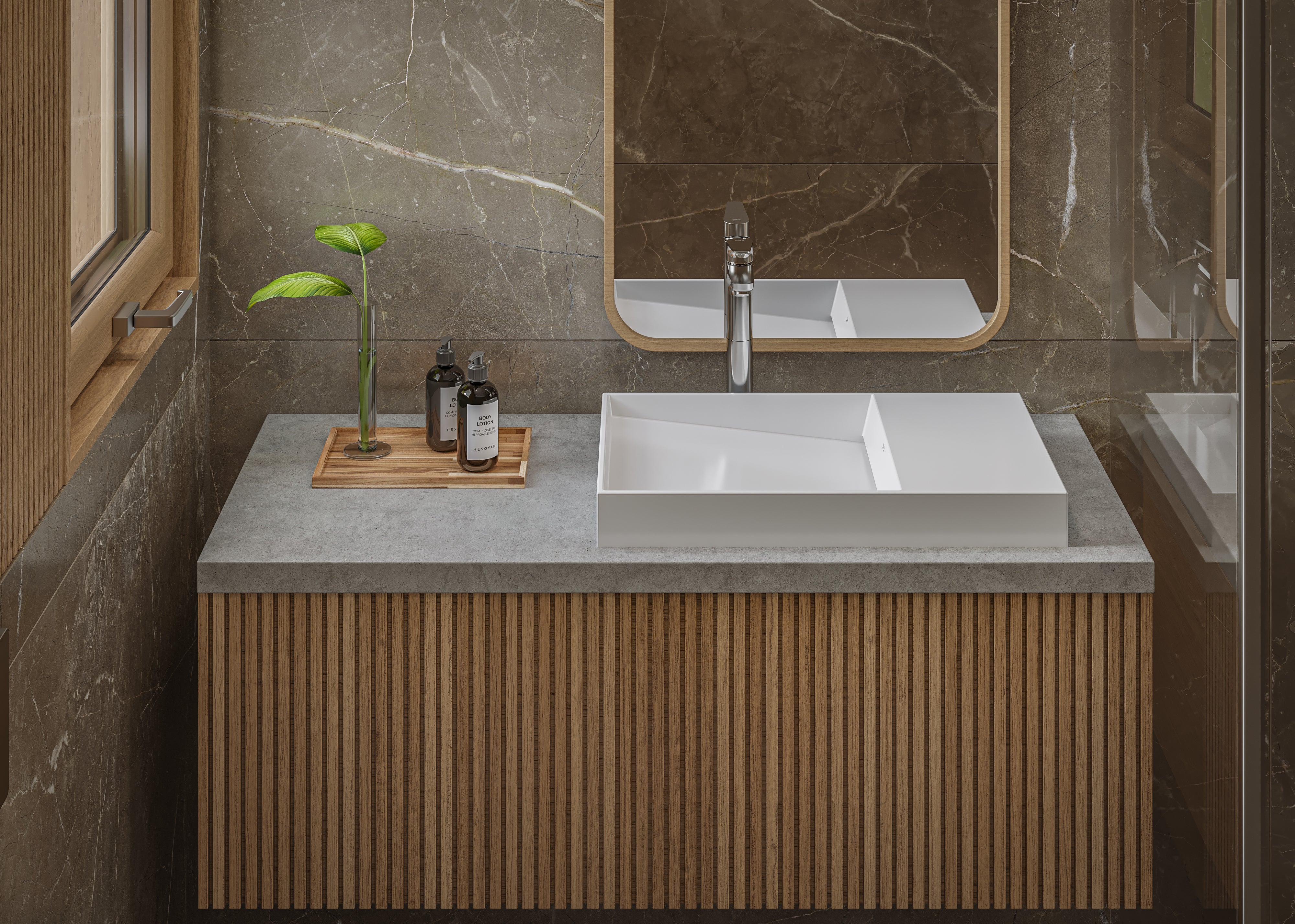The Horizon Collection by Brazilian architect João Armentano is inspired by the interplay of scale, geometry, and the play of light vs shadow. The sinks in this collection are low and long with a minimalist profile recalling the horizon over calm water. The linear theme is continued in the basin where water flows over a flat or sloped surface to an elegantly concealed drain. Drawing on his background in architecture, Mr. Armentano applied special effort to maximize practicality in the collection. Basins remain wide to prevent splashing while expansive surface areas serve as easy-to-clean stages for daily toiletries.