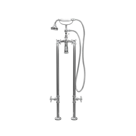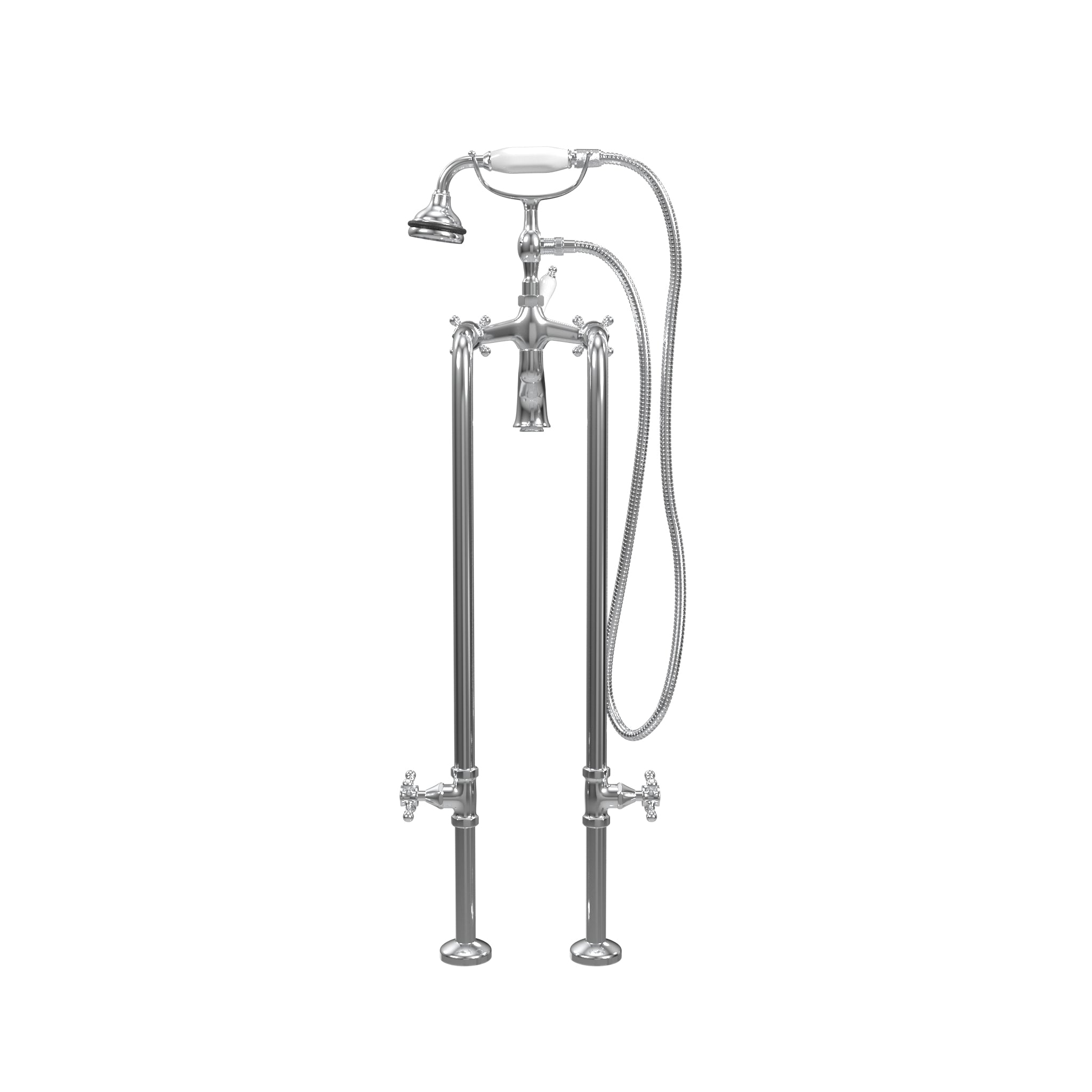 Shop the Free-Standing Tub Filler with Hand Shower and Stop Valves, Ceramic Accents by Cheviot—European ceramic faucet handcrafted for luxury & durabili...