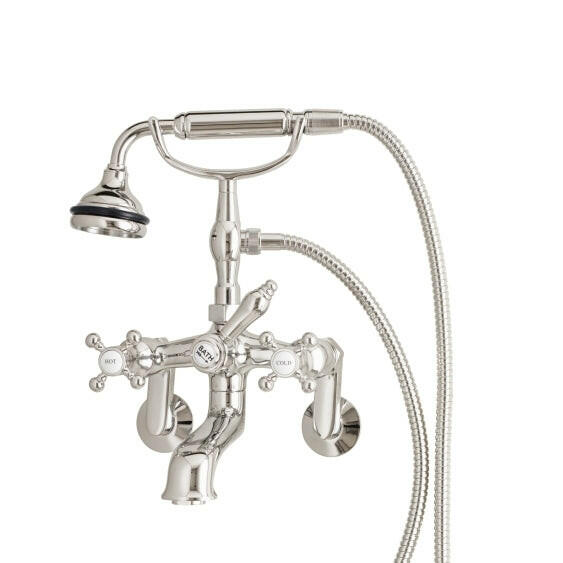 Shop the Wall Mount Tub Filler with Hand Shower, All Metal Accents by Cheviot—premium materials faucet handcrafted for luxury & durability. Lifetime war...